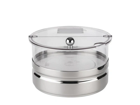 Miska chłodząca Maxi TOP FRESH to wysokiej jakości naczynie przeznaczone do serwowania potraw wymagających zachowania niskiej temperatury. Produkt ten wyróżnia się solidną, stalową podstawą, praktycznym wkładem chłodzącym oraz przezroczystą pokrywą z miejscem na opis, co sprawia, że idealnie sprawdzi się podczas bufetów, bankietów czy spotkań rodzinnych.