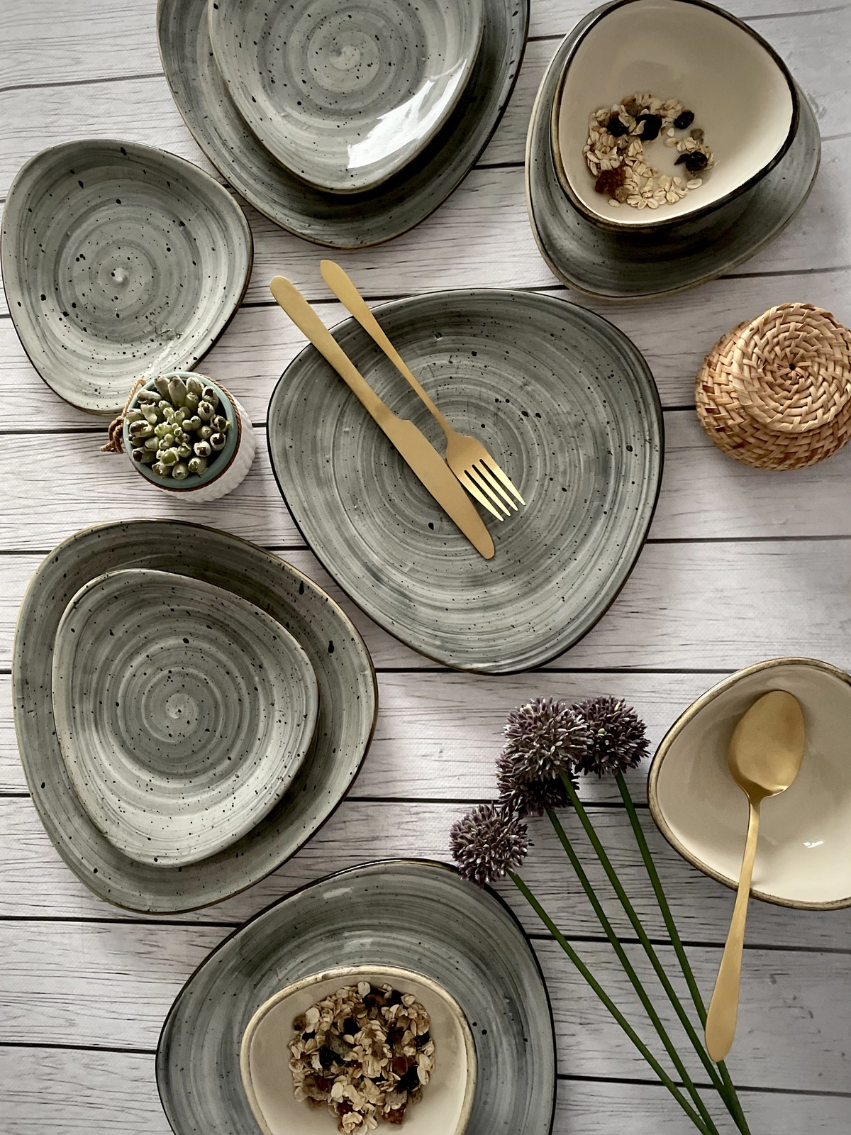 - Wytrzymała kamionka – materiał o niskiej nasiąkliwości (poniżej 0,5%) gwarantuje trwałość i odporność na codzienne użytkowanie, a także bezpieczeństwo podczas mycia w zmywarce i używania w kuchence mikrofalowej oraz piekarniku.