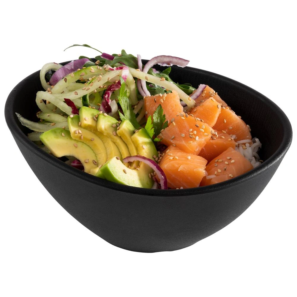 Miska NERO to nowoczesne naczynie wykonane z wytrzymałej melaminy, wyróżniające się eleganckim, czarnym kolorem oraz nietuzinkowym kształtem. Idealnie sprawdzi się w gastronomii, kuchni domowej oraz podczas serwowania przekąsek, sałatek lub deserów. Łączy w sobie estetykę i trwałość, a jej kompaktowa pojemność pozwala wygodnie podać zarówno danie główne, jak i mniejsze przystawki.