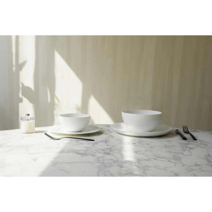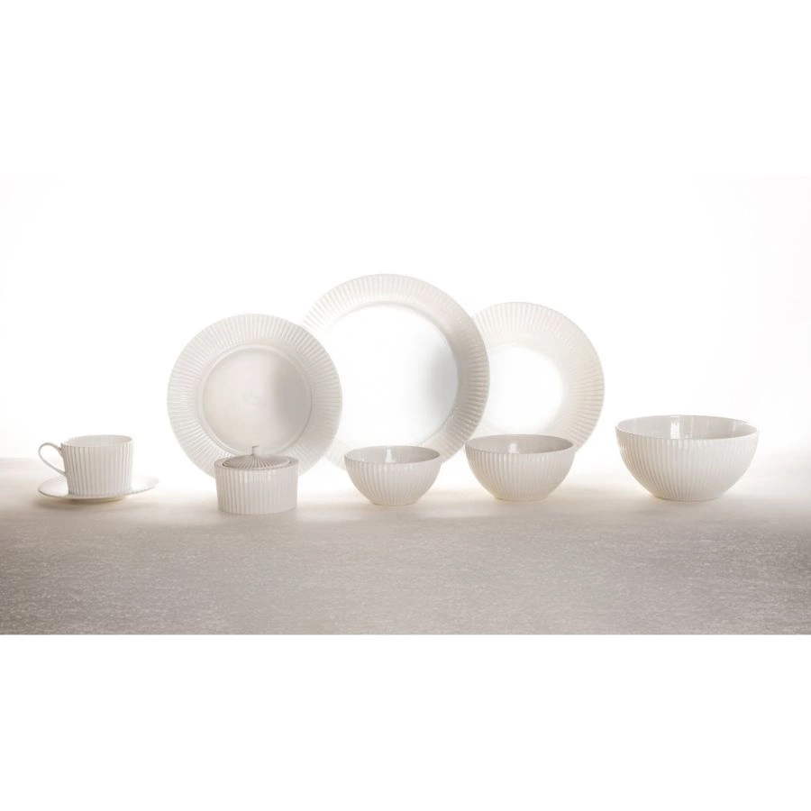 - Efektowne ryflowanie na zewnętrznej części naczyń, dodające finezji i elegancji.