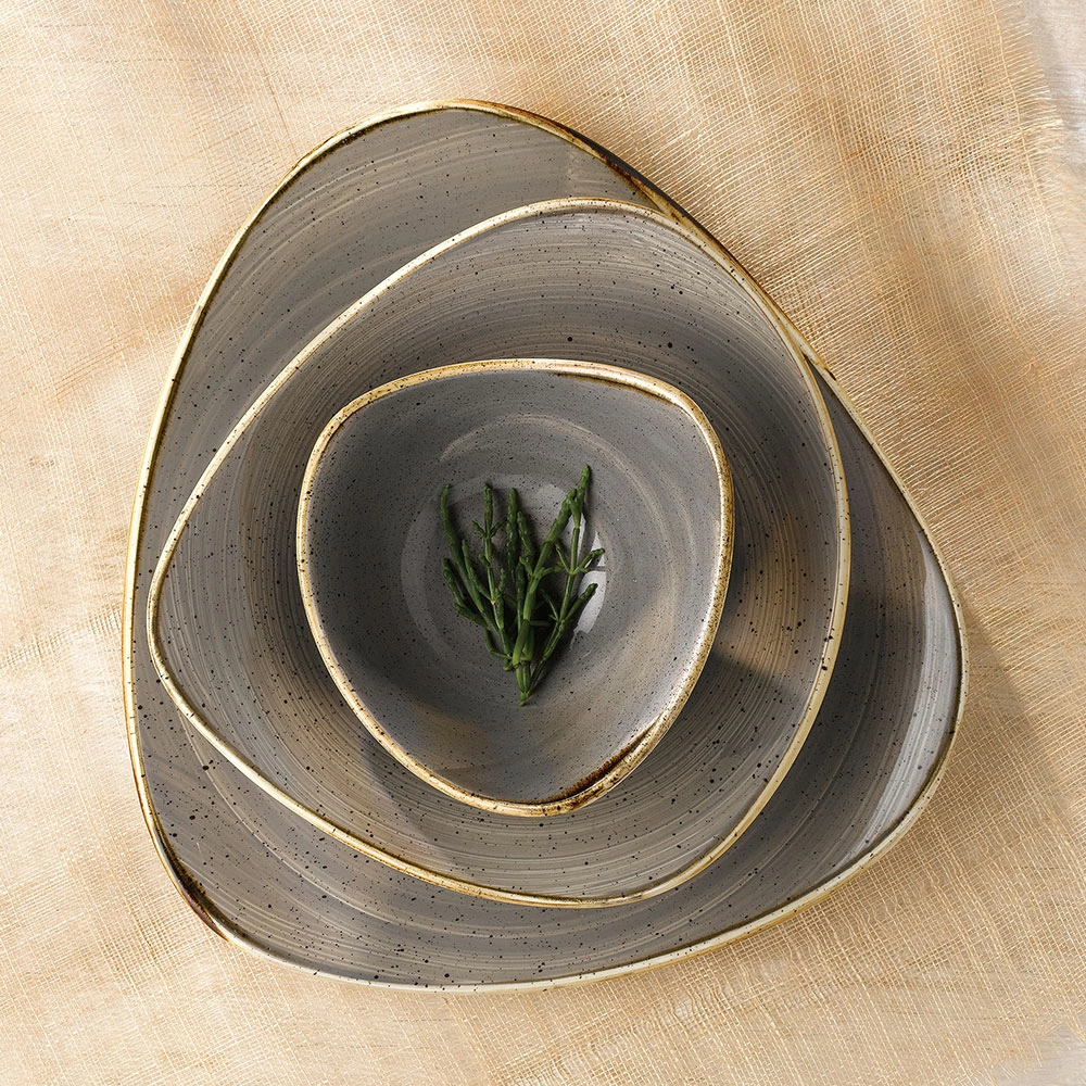 Miska porcelanowa trójkątna o śr. 23,5 cm z linii Peppercorn Grey kolekcji Stonecast marki Churchill.