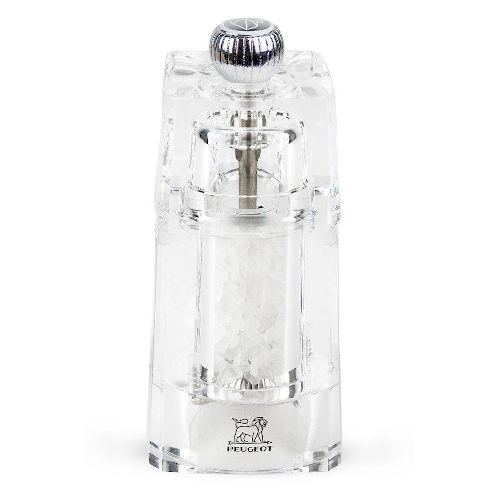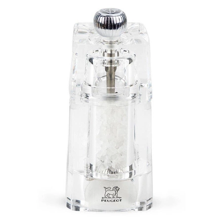 Młynek do mielenia soli z mechanizmem tradycyjnym o wysokości 11 cm. Wykonany z akrylu. Kolor transparentny.