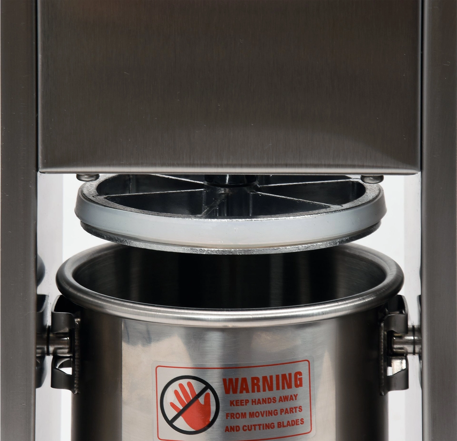 Urządzenie wyposażono w uchylny zbiornik na farsz o wymiarach 140x200 mm, który można łatwo zdemontować i czyścić. Sylikonowa uszczelka na tłoku zapobiega przeciekaniu farszu, co oznacza, że cały farsz trafia dokładnie tam, gdzie powinien, eliminując straty i utrzymanie czystości wewnątrz urządzenia.