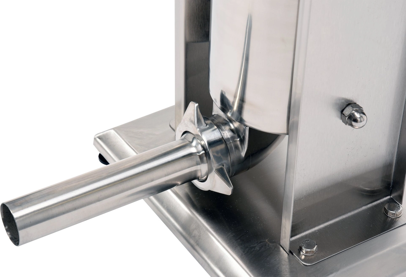 Nadziewarka wykonana jest z trwałej stali nierdzewnej, co gwarantuje nie tylko solidność konstrukcji, ale także łatwość utrzymania w czystości. Chromowana powierzchnia dodatkowo ułatwia proces czyszczenia, co jest istotne zarówno dla profesjonalnych zakładów przetwórstwa mięsnego, restauracji czy firm cateringowych, jak i dla gospodarstw domowych czy myśliwych.