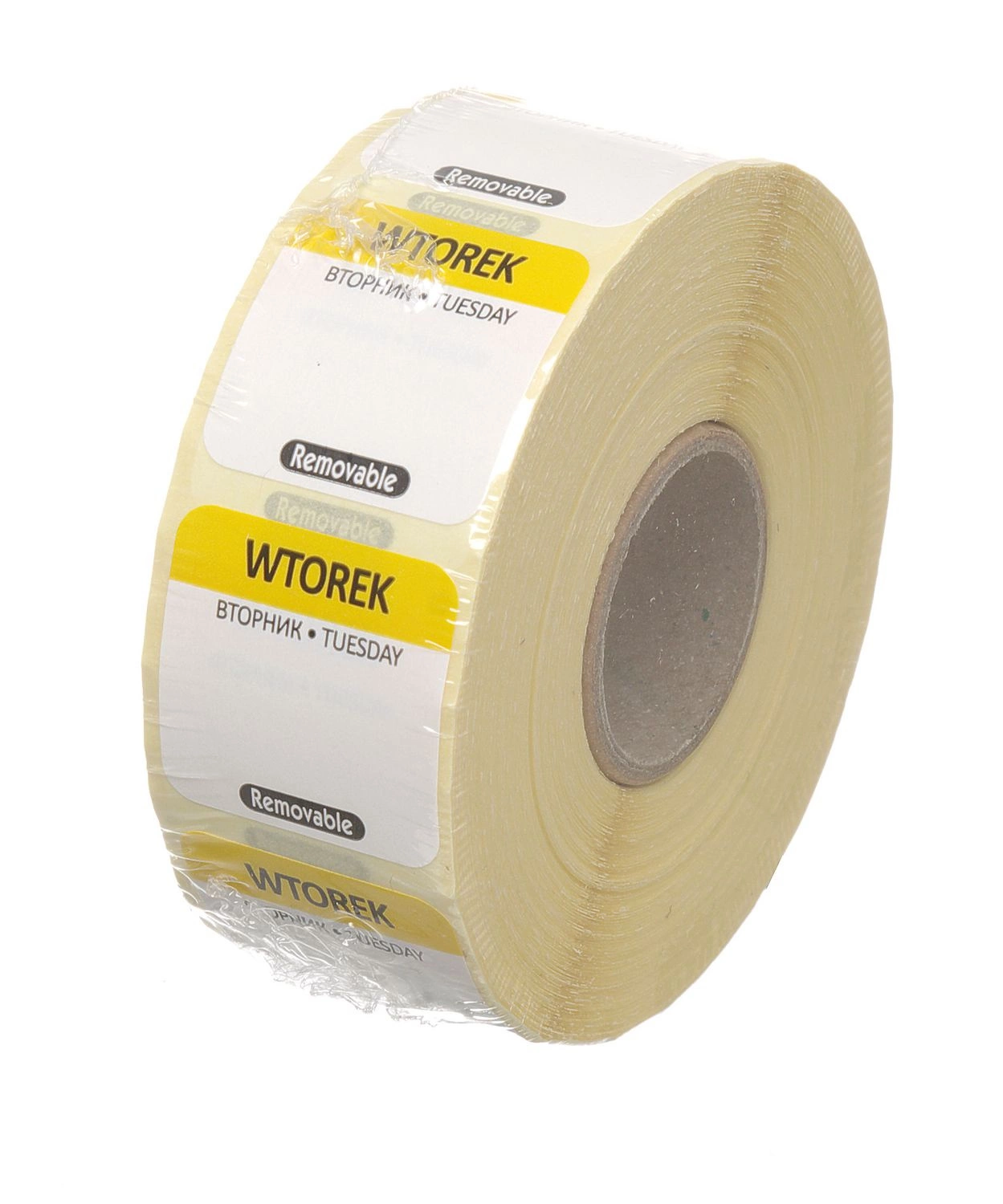 Na zdjęciu prezentujemy naklejki ze wszystkimi dniami tygodnia, cena dotyczy rolki z napisem "Wtorek".