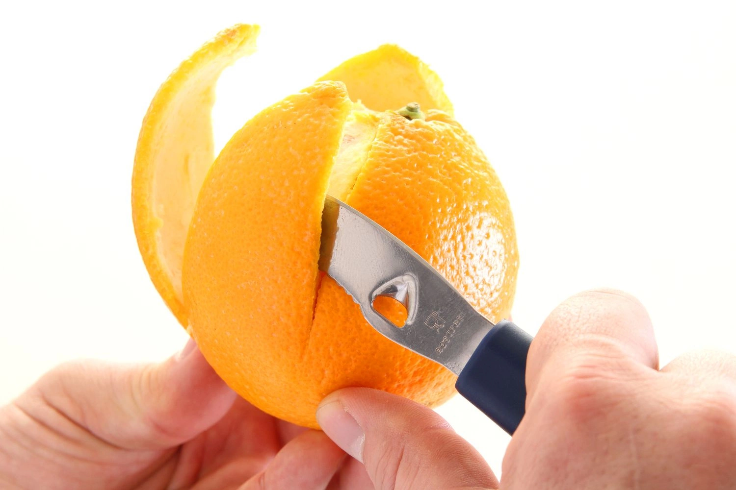Nóż do obierania cytrusów. Wykonany ze stali nierdzewnej . Uchwyt z polipropylenu. Nóż można myć w zmywarkach.