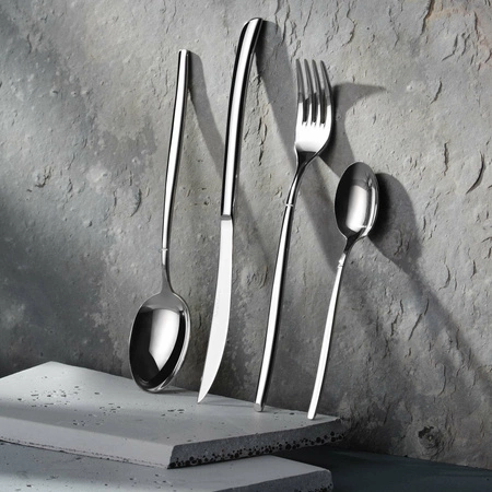 - Wysoki połysk – proces ręcznego polerowania nadaje widelcom wyjątkowy blask, dzięki czemu prezentują się bardzo elegancko na każdym stole, podkreślając prestiż i estetykę podawanych dań.