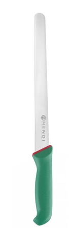 Nóż do szynki i łososia z linii Green Line z zielonym trzonkiem. Długość całego noża 41,5 cm. Długość ostrza 30 cm.