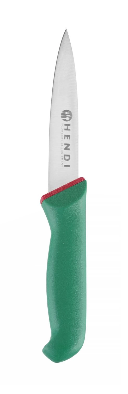 Nóż kuchenny z linii Green Line z zielonym trzonkiem. Długość całego noża 26 cm. Długość ostrza 14 cm.