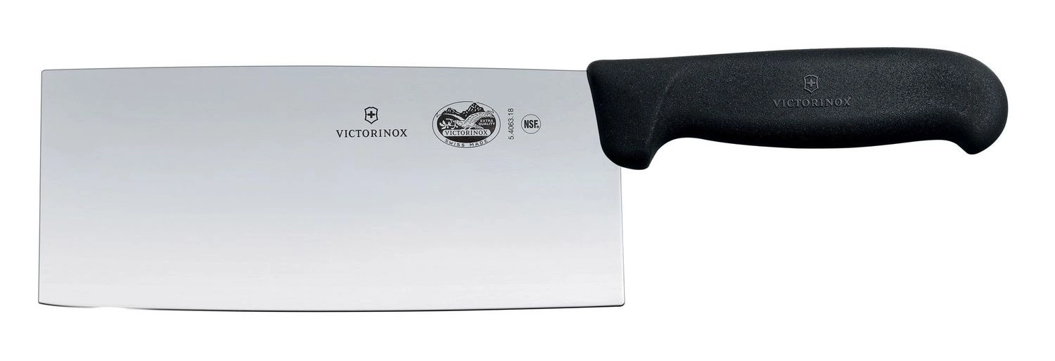 Nóż szefa kuchni w stylu chińskim marki Victorinox. Posiada budowę podobną do tasaka jednak jego konstrukcja jest znacznie lżejsza, dzięki czemu nadaje się do krojenia, porcjowania, rozgniatania i siekania takich produktów jak mięso, warzywa, owoce czy zioła. Ostrze noża wykonane jest ze stali nierdzewnej najwyższej jakości, dzięki czemu nóż na długo zachowuje ostrość. Ostrze ma długość 18 cm. Rączka noża wykonana z materiału TPE Fibrox w kolorze czarnym. Rękojeść posiada ergonomiczny kształt, dzięki czemu nóż dobrze leży w dłoni i poprawia jakość pracy. Nóż nadaje się do mycia w zmywarkach gastronomicznych.
