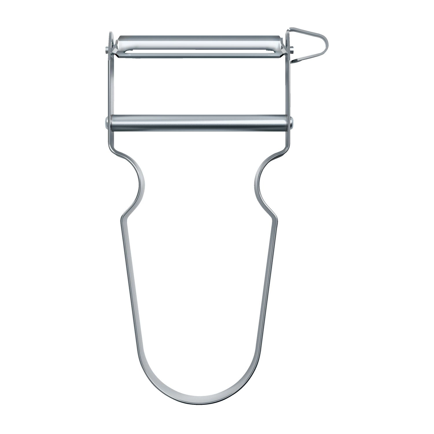 Obieraczka STAR z ostrzem gładkim marki Victorinox, wykonana w całości ze stali nierdzewnej o najwyższej jakości. Obieraczka posiada ruchome, wyjątkowo skuteczne ostrze, które obieraja skórkę niezwykle cienko, zachowując wszystkie witaminy zawarte w powierzchni warzyw i owoców. Długość obieraczki wynosi 11 cm, szerokość 6,5 cm. Obieraczka nie nadaje się do mycia w zmywarce.