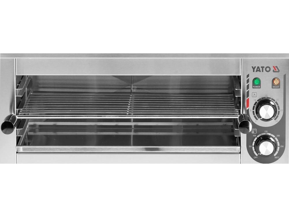 Opiekacz elektryczny marki YATO o wymiarach 61 x 33 x 28 cm, idealny do przygotowywania zapiekanek, grzanek i tostów. Doskonale sprawdza się także do grillowania i podgrzewania różnorodnych potraw. Wysoka moc 2500 W gwarantuje szybkie i równomierne opiekanie.