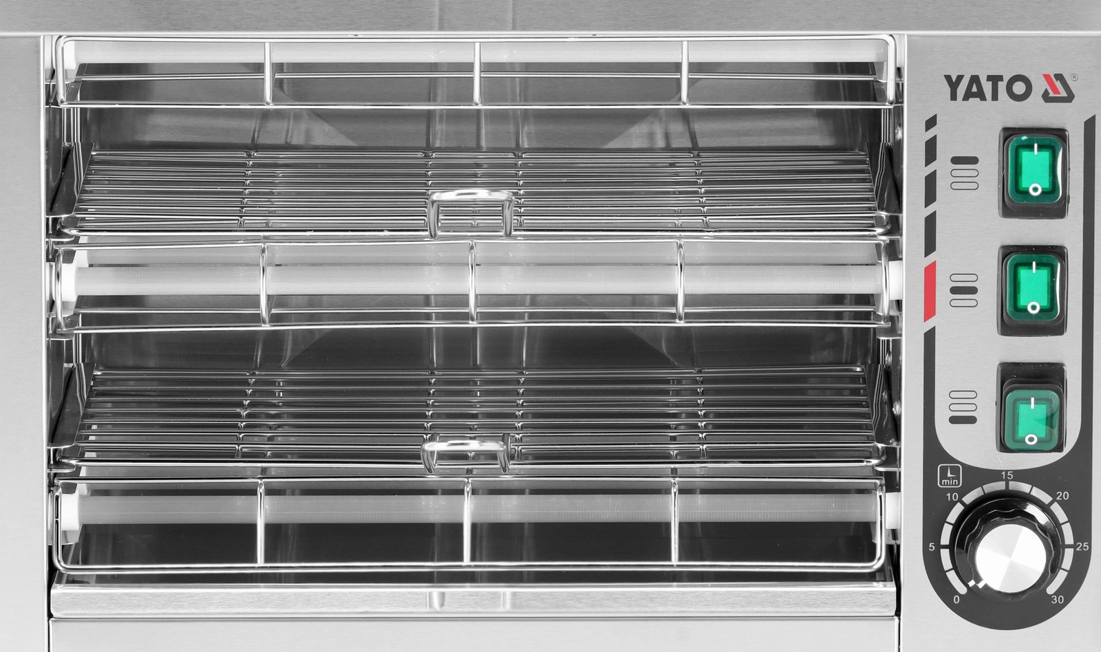 Opiekacz kwarcowy YATO YG-04660 to wszechstronne urządzenie przeznaczone do przygotowywania zapiekanek, grzanek, tostów, a także grillowania i podgrzewania różnego rodzaju potraw. Dzięki zastosowaniu lamp kwarcowych o mocy 3000 W gwarantuje szybkie i równomierne opiekanie.