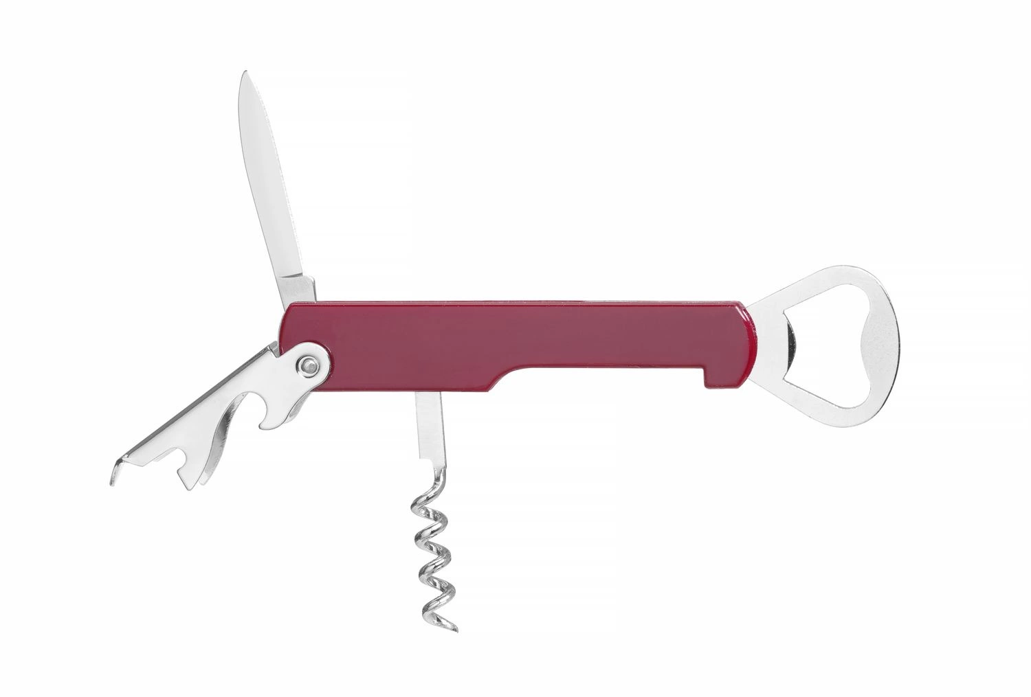 Otwieracz 4-funkcyjny wykonany ze stali chromowanej. Uchwyt z tworzywa ABS.