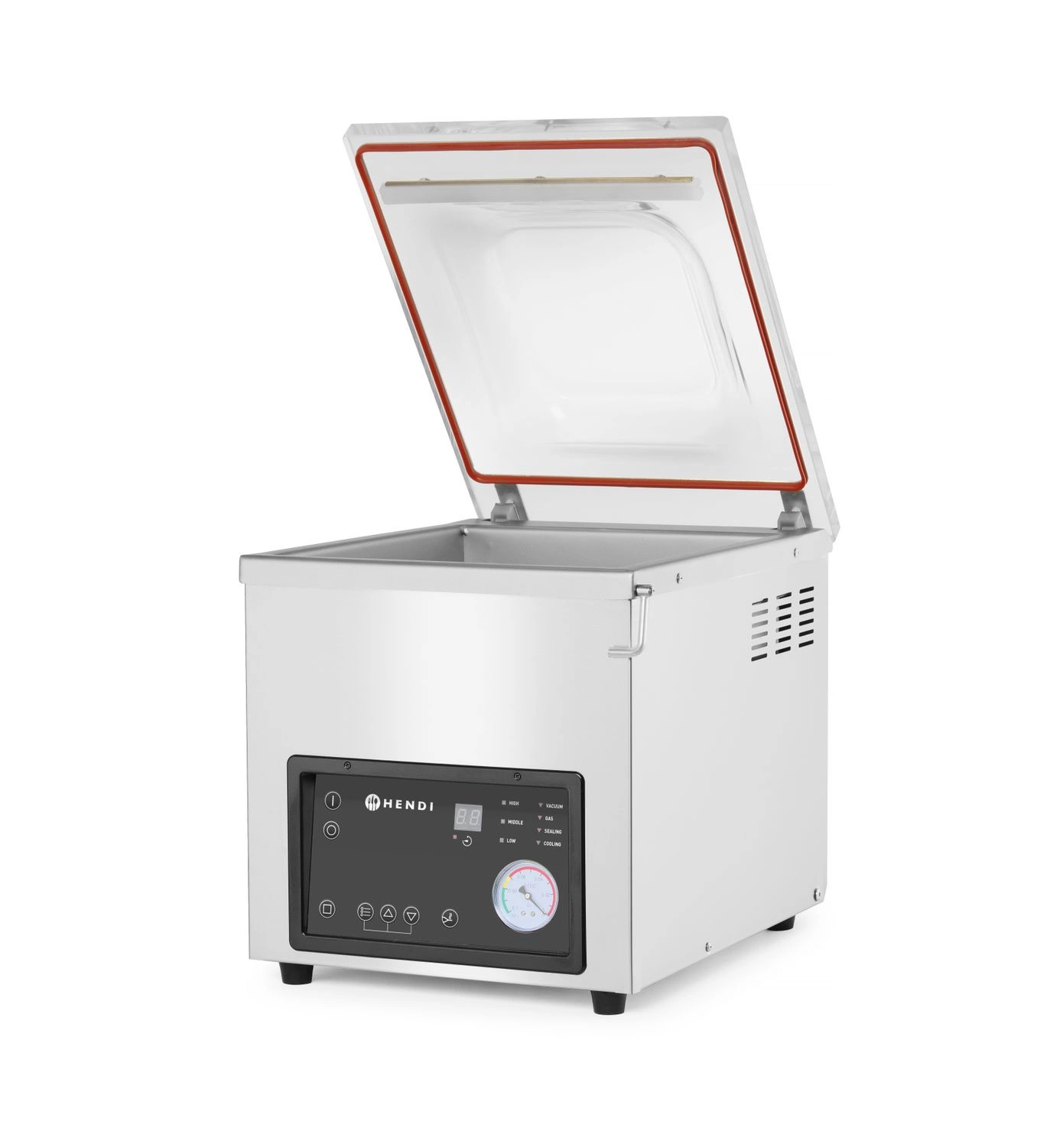 Pakowarka próżniowa Kitchen Line komorowa. Przeznaczona do pakowania produktów spożywczych i technicznych. Konstrukcja i komora wykonana z wysokiej jakości stali nierdzewnej 304. Wypukła pokrywa umożliwiająca pakowanie dużych porcji. Transparentna pokrywa umożliwiająca kontrolę procesu pakowania, wykonana z materiału o wysokiej gęstości wydłużającej jej żywotność. Uszczelka w kształcie litery „V” gwarantująca wysoki współczynnik szczelności. Wyświetlacz cyfrowy. Łatwa obsługa, automatyczna praca. Regulowany czas zgrzewania, wskaźnik ciśnienia. Wydajność pompy 20m 3 /h