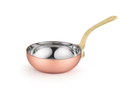 Patelnia do serwowania w kolorze miedzi to stylowy i praktyczny element wyposażenia każdej kuchni oraz sali restauracyjnej. Dzięki kompaktowym wymiarom oraz pojemności 80 ml doskonale sprawdzi się do eleganckiego podawania przystawek, finger foodów czy mini porcji dań. Wyróżnia ją wyjątkowy design oraz wysoka funkcjonalność, która zadowoli zarówno profesjonalistów, jak i miłośników efektownego serwowania potraw.