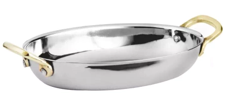 Owalna patelnia do serwowania z dwoma uchwytami wykonana ze stali nierdzewnej to praktyczne i stylowe naczynie, które doskonale sprawdzi się zarówno w profesjonalnej gastronomii, jak i w domowej kuchni. Kompaktowy rozmiar, nowoczesny wygląd oraz wysoka trwałość czynią ją idealnym wyborem do serwowania przekąsek, dań finger food czy niewielkich porcji dań głównych bezpośrednio na stół.
