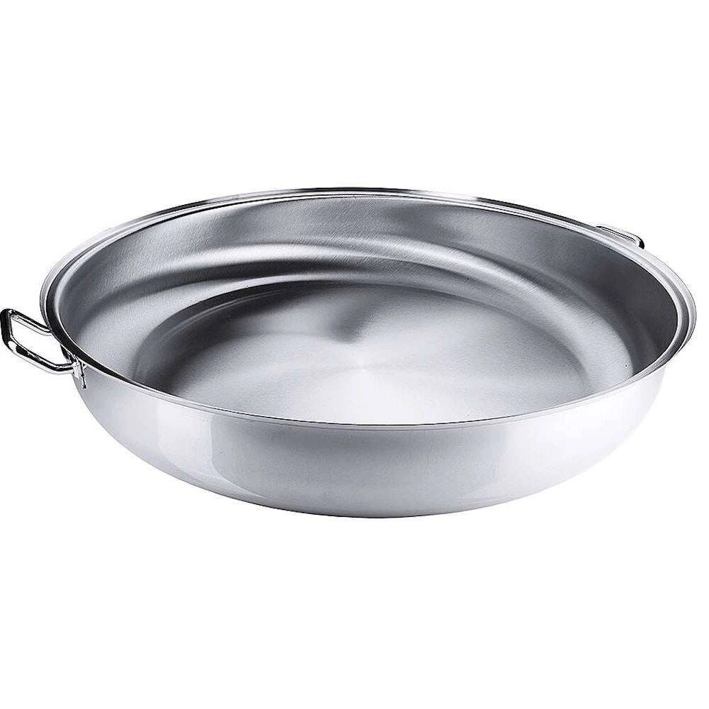 Patelnia stalowa do paelli CONTACTO 2102/800 to profesjonalne naczynie kuchenne o imponującej średnicy 80 cm, przeznaczone do przygotowywania tradycyjnej hiszpańskiej paelli oraz innych potraw serwowanych w większym gronie. Wykonana z wysokiej jakości stali nierdzewnej satynowanej, zapewnia trwałość i estetyczny wygląd. Wyposażona w dwa solidne uchwyty, które nie nagrzewają się podczas gotowania, umożliwia bezpieczne przenoszenie nawet przy wysokich temperaturach.