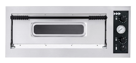 Piec do pizzy 1-komorowy Basic 4 marki Prismafood włoskiej produkcji. Front wykonany ze stali nierdzewnej, obudowa ze stali malowanej na czarno, izolacja z wełny mineralnej. Sterowanie mechaniczne, oświetlenie komory, dno komory wyłożone szamotem. Grzałki w każdej komorze (góra i dół). Regulacja grzałek za pomocą niezależnych termostatów. Regulacja temperatury od 45 do 455°C. Termometr oddzielnie dla każdej komory.
