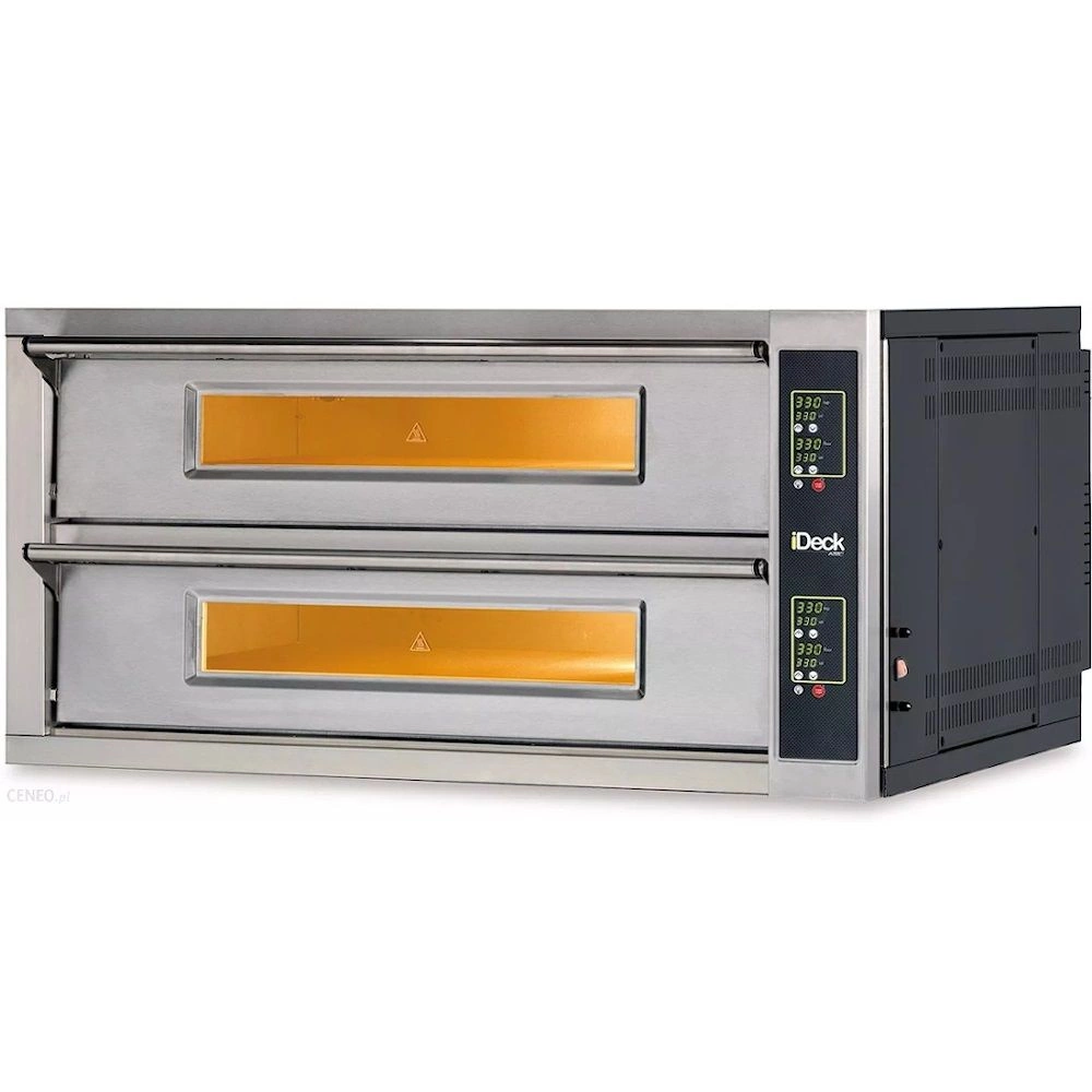Elektroniczny 2-komorowy piec do pizzy Ideck 105.65 marki Moretti Forni. Wykonany ze stali nierdzewnej oraz matowej, czarnej blachy. Urządzenie proste w obsłudze dzięki uchwytowi wzdłuż całej szerokości komory oraz sprężynom domykającym drzwi. Specjalna perforowana powierzchnia ogniotrwała i gęste rozmieszczenie grubych elementów grzewczych gwarantują idealne i równomierne pieczenie. Piec zapewnia idealne pieczenie dla wszystkich rodzajów produktów. Cechuje się doskonałym stosunkiem jakości do ceny, a przy tym niskim zużyciem energii. Polecany przede wszystkim w pizzeriach, jak również innych placówkach gastronomicznych, restauracjach, barach czy stołówkach.