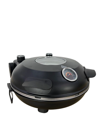Piec FORGAST FG09556 został wykonany z trwałej stali w czarnym kolorze, co zapewnia nie tylko nowoczesny wygląd, ale także łatwość utrzymania w czystości. Szybka w pokrywie pozwala na stałą kontrolę procesu pieczenia bez konieczności otwierania urządzenia, a wbudowany termometr umożliwia bieżące monitorowanie temperatury w komorze. W zestawie znajdziesz płytę szamotową o średnicy 310 mm oraz emaliowaną patelnię. Urządzenie doskonale sprawdzi się podczas rodzinnych spotkań, domowych imprez czy kulinarnych eksperymentów, pozwalając na przygotowanie pizzy, focacci, zapiekanek oraz grillowanych przekąsek.