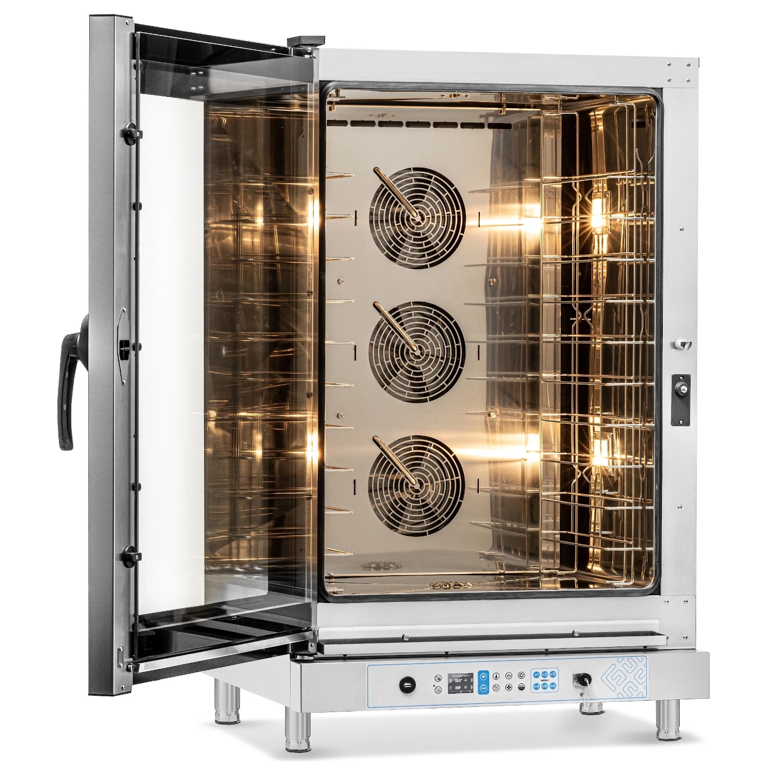 Piec konwekcyjno-parowy elektryczny FORGAST FG09521 to zaawansowane urządzenie przeznaczone do profesjonalnych kuchni, piekarni i cukierni. Oferuje dużą pojemność oraz cyfrowe sterowanie, umożliwiając jednoczesne przygotowanie wielu różnorodnych potraw. Doskonale sprawdza się zarówno w gastronomii, jak i wszędzie tam, gdzie liczy się jakość oraz powtarzalność wypieków i dań.