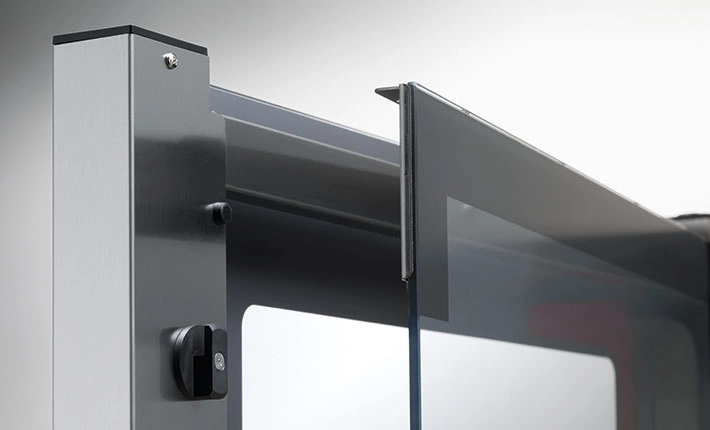 W skład pieca wchodzą elementy zapewniające wygodę użytkowania i bezpieczeństwo: podwójnie przeszklone drzwi z chłodzeniem, demontowalne prowadnice GN, halogenowe oświetlenie komory oraz system odprowadzania płynów z komory. Dodatkowo urządzenie posiada przyłącze wody ¾”, przystosowane do pracy z wodą uzdatnioną, co wydłuża jego żywotność i zapewnia sprawność systemu parowego. Możliwość zamówienia dedykowanych akcesoriów pozwala dostosować piec do indywidualnych potrzeb kuchni.