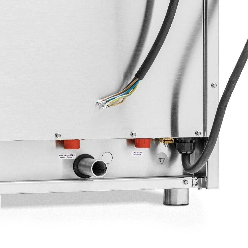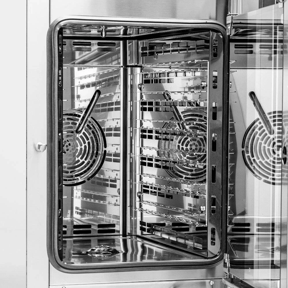 Piec wyposażono w automatyczny system mycia z jednokomponentowym środkiem YesClean oraz zintegrowaną skrzynkę detergentu. Wnętrze z wysokiej jakości stali nierdzewnej AISI 304, podwójna przeszklona szyba, konstrukcja bez śrub i ergonomiczny uchwyt zapewniają łatwe czyszczenie i spełnienie norm HACCP.