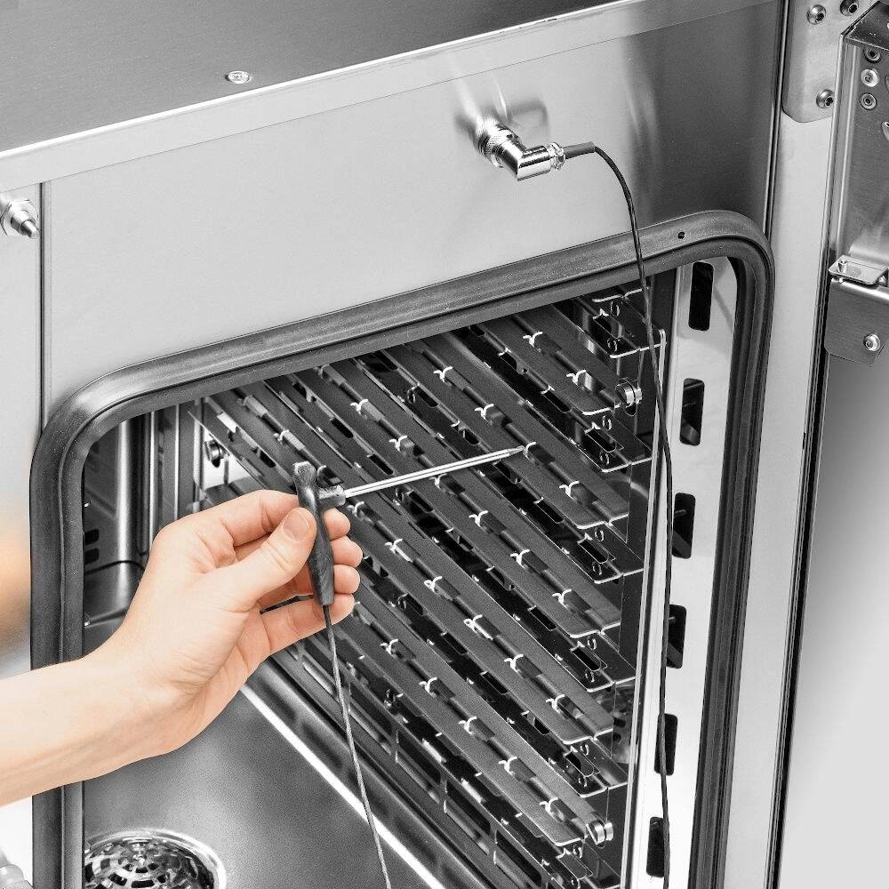 EGO SLIM 6T GN1/1 wyposażony jest w technologię FastSteam oraz Fast Chimney System (FCS), które gwarantują precyzyjne zarządzanie parą i wilgotnością. Dodatkowo dostępne są zaawansowane funkcje, takie jak gotowanie Delta T – idealne do pieczenia, duszenia i wędzenia – oraz Cook&Go i Time’s Up, umożliwiające zsynchronizowane przygotowywanie potraw z różnych programów i czasów.