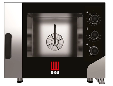Piec konwekcyjno- parowy elektryczny Millenial Smart Bakery. Przystosowany do 4 blach 600x400mm. Posiada 3 pokrętła, które służą do: regulacji czasu w zakresie 10 do 120 minut lub pracy Non-stop, regulacji temperatury 100°C do 275°C, 5- stopniowej regulacji zaparowania komory. Podwójnie przeszklone drzwi posiadają blokadę otwarcia, która chroni obsługę przed niekontrolowanym ruchem. Uszczelka drzwi wykonana z trwałego sylikonu, łatwa do samodzielnej wymiany. Rynienka pod drzwiami. Oświetlenie LED komory. Izolowana obudowa pieca wpływa na oszczędność energii elektrycznej. Komora jak i obudowa pieca wykonana ze stali nierdzewnej.  Wypoziomowanie pieca jest możliwe dzięki regulowanym nóżkom. Wymagane jest podłączenie do prądu, wody uzdatnionej oraz kanalizacji.