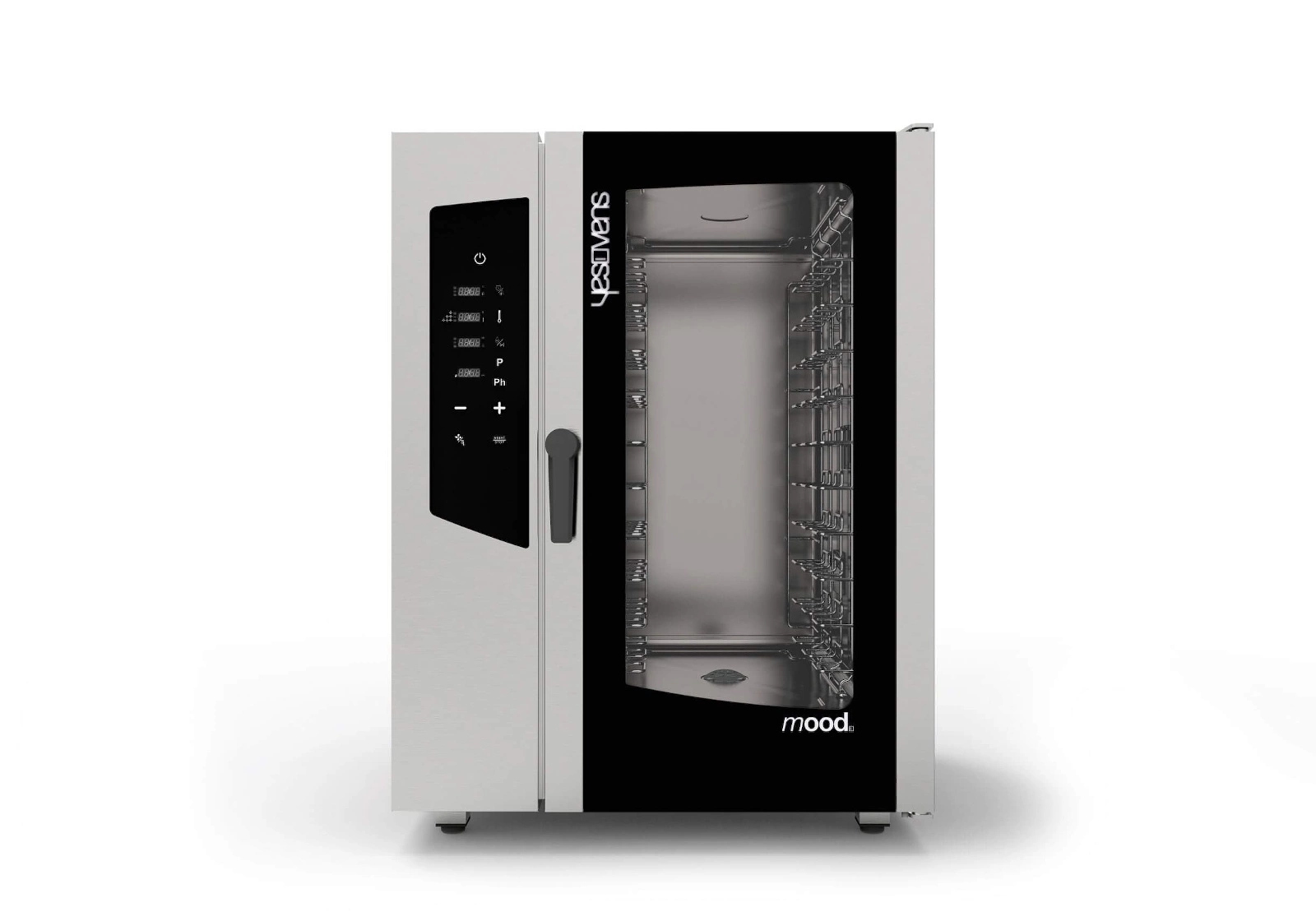 MOOD został wyposażony w wielofunkcyjny cyfrowy wyświetlacz, który zapewnia dostęp do wszystkich zapisanych programów oraz ich edycji. Obsługa pieca jest intuicyjna, a system autodiagnostyki na bieżąco informuje o ewentualnych nieprawidłowościach. Możliwe jest zarówno ręczne, jak i automatyczne nagrzewanie pieca oraz ręczna regulacja poziomu wilgotności w komorze.