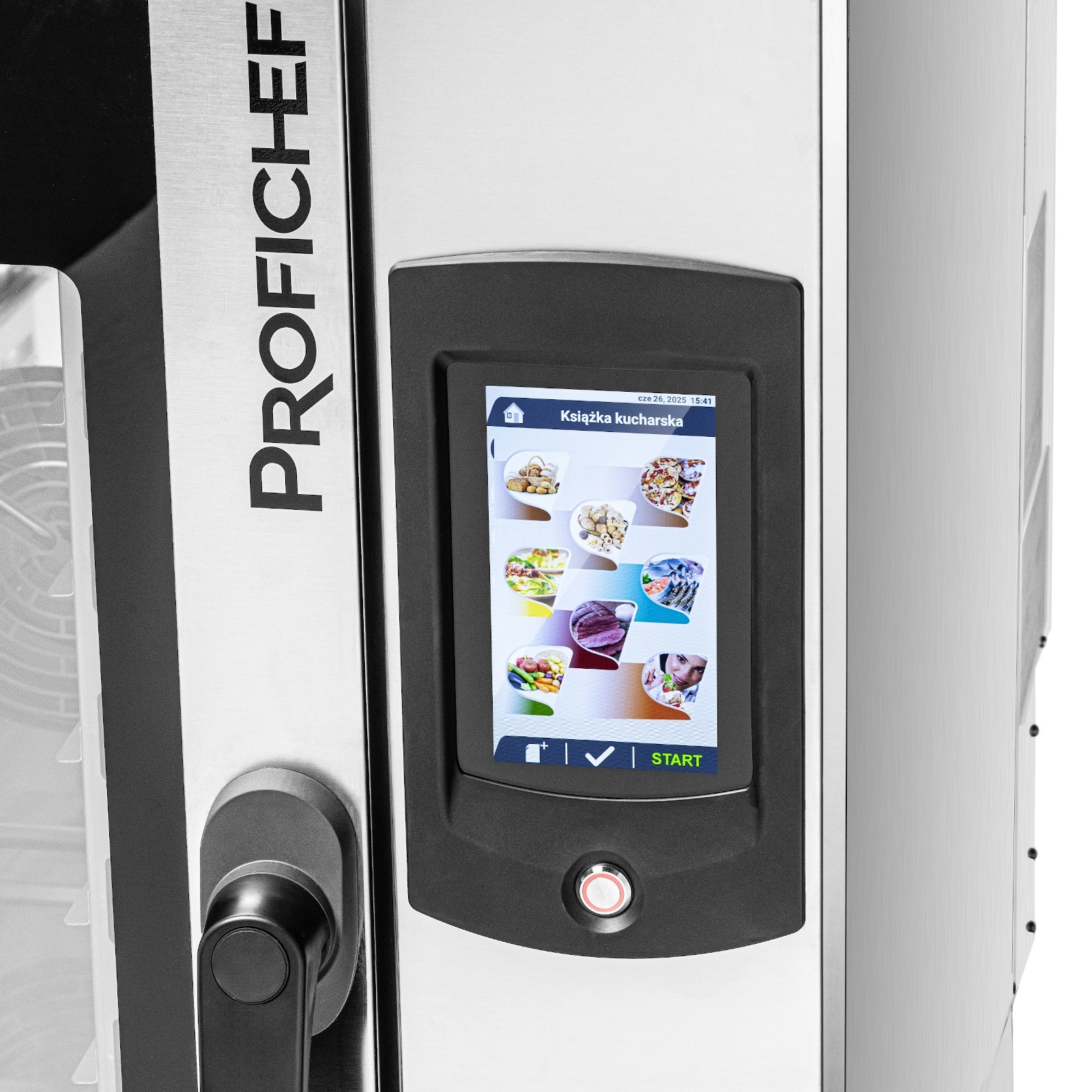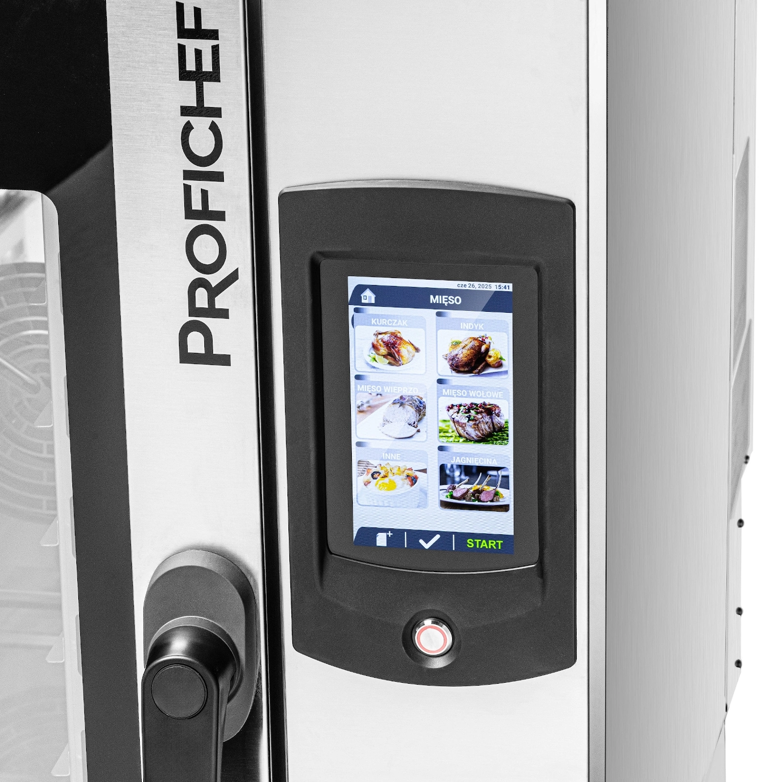 • Dotykowy panel sterowania LCD – 7-calowy ekran zapewnia szybki dostęp do gotowych i własnych przepisów oraz intuicyjne zarządzanie programami pieczenia, co znacznie ułatwia codzienną pracę kucharzy.