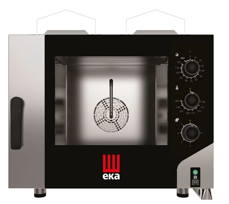 Piec konwekcyjno- parowy gazowy Millenial Smart Bakery. Przystosowany do 4 blach 600x400. Posiada 3 pokrętła, które służą do: regulacji czasu w zakresie 10 do 120 minut lub pracy Non-stop, regulacji temperatury 100°C do 260°C, 5- stopniowej regulacji zaparowania komory. Podwójnie przeszklone drzwi posiadają blokadę otwarcia, która chroni obsługę przed niekontrolowanym ruchem. Uszczelka drzwi wykonana z trwałego sylikonu, łatwa do samodzielnej wymiany. Rynienka pod drzwiami. Oświetlenie LED komory. Izolowana obudowa pieca wpływa na oszczędność energii elektrycznej. Komora jak i obudowa pieca wykonana ze stali nierdzewnej. Wypoziomowanie pieca jest możliwe dzięki regulowanym nóżkom. Wymagane jest podłączenie do prądu, wody uzdatnionej oraz kanalizacji.