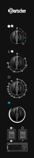 - Sterowanie manualne – intuicyjne pokrętła oraz wyświetlacz LED do kontroli temperatury i czasu pracy.