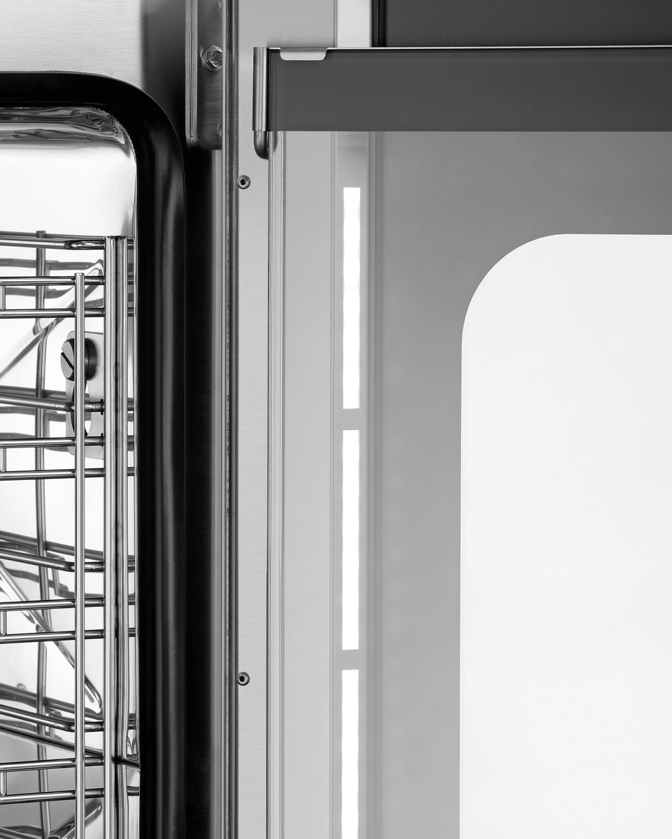 - Oświetlenie LED w drzwiach – zapewnia doskonałą widoczność wnętrza pieca.