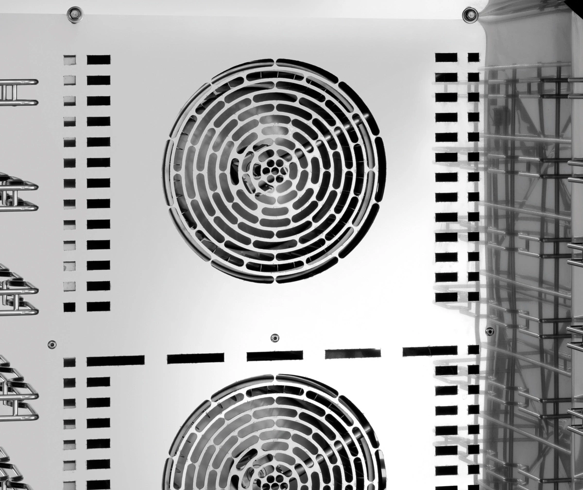 - Wentylacja: 2 wentylatory z 3-stopniową regulacją prędkości oraz systemem chłodzenia komory po zakończeniu gotowania.