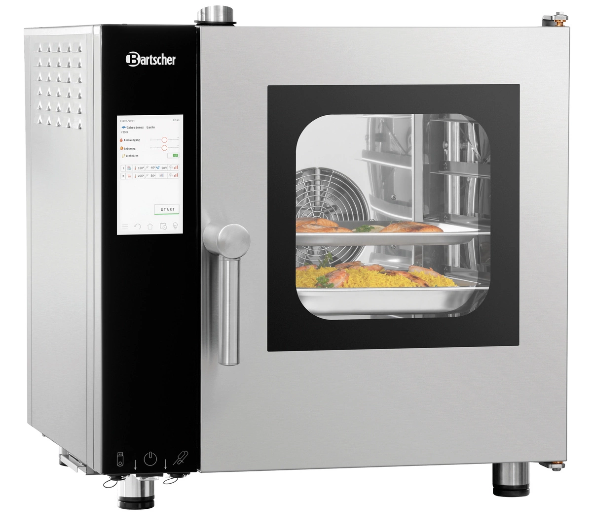 BARTSCHER Silversteam2 P-5230DRS to nowoczesny piec konwekcyjno-parowy, który zapewnia wydajność, precyzję i łatwość obsługi. Dzięki funkcji Rack Control, zintegrowanemu systemowi czyszczenia i nowoczesnym rozwiązaniom, pozwala na efektywne zarządzanie procesem gotowania, spełniając najwyższe wymagania gastronomiczne.