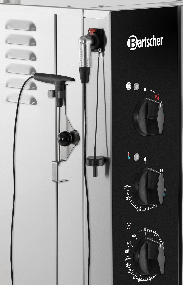 - Przyłącze bagnetowej sondy temperatury – złącze boczne umożliwia użycie opcjonalnej sondy do precyzyjnego pomiaru temperatury wewnątrz potrawy.