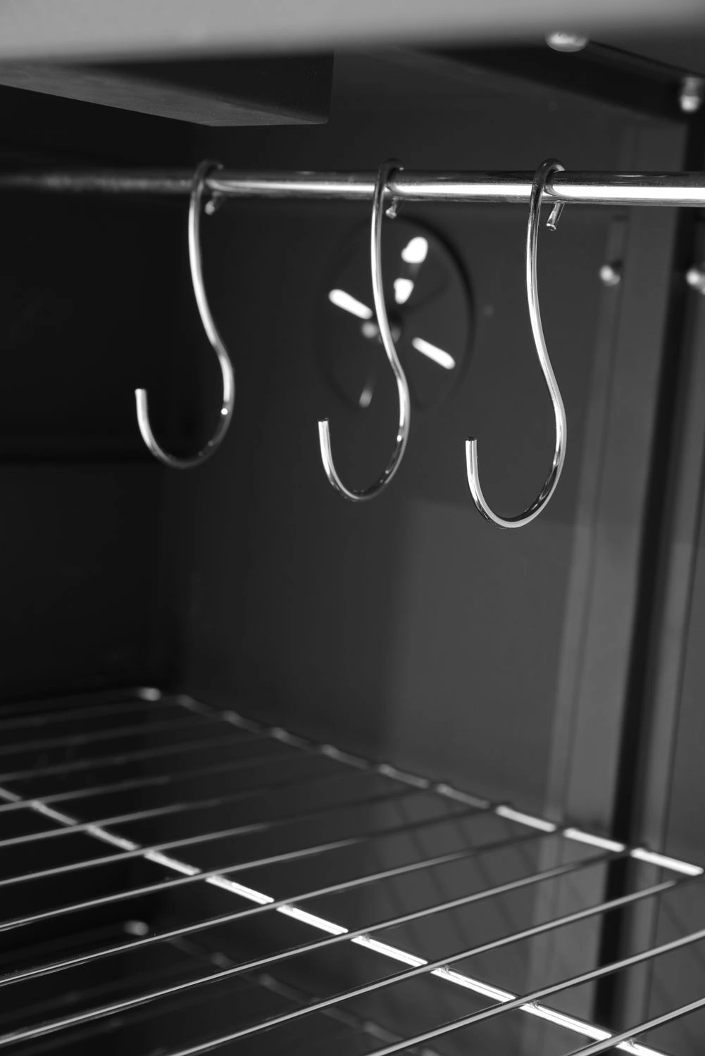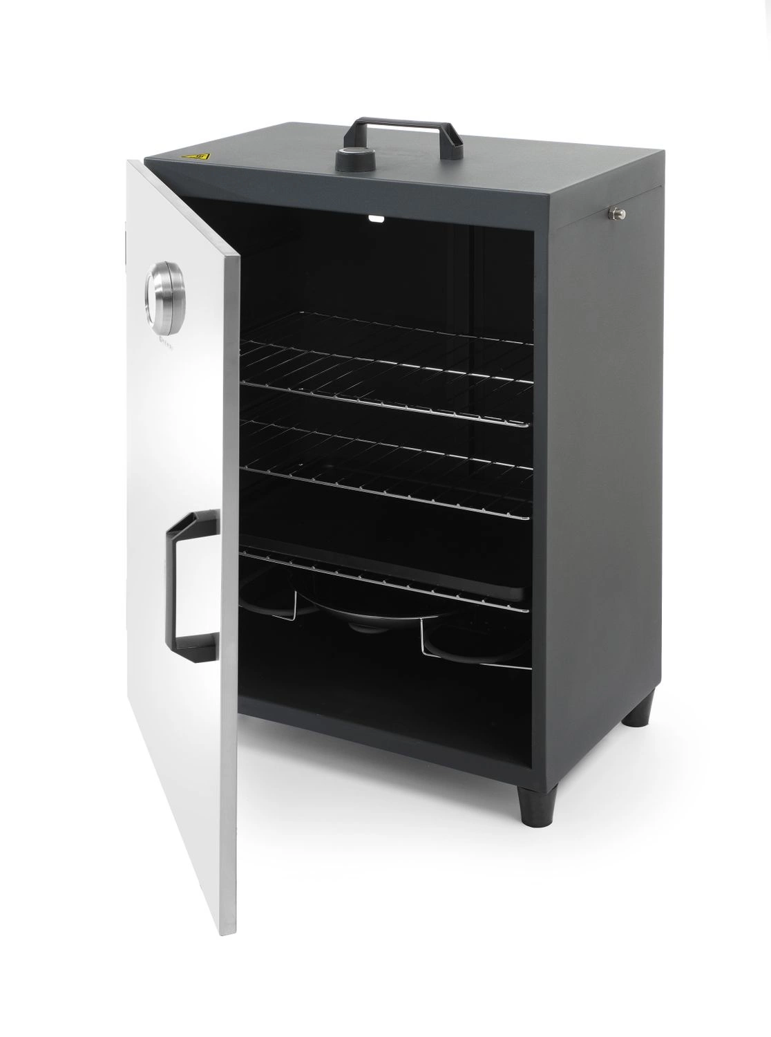Piec wędzarniczy elektryczny. Idealny do wędzenia ryb, wołowiny, szynki i warzyw. Wykonany ze stali nierdzewnej, podwójne izolowane drzwi zamykane na magnes. Regulacja temperatury za pomocą termostatu, termometr wbudowany w drzwi. Otwór wentylacyjny z tyłu obudowy.