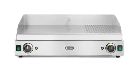 Płyta grillowa elektryczna HENDI 203163 to profesjonalne urządzenie przeznaczone do intensywnej eksploatacji w gastronomii, takich jak restauracje, bary szybkiej obsługi oraz food trucki. Urządzenie wyróżnia się chromowaną płytą roboczą o grubości 9 mm, która zapewnia doskonałe przewodnictwo ciepła i wytrzymałość, a także podzieloną powierzchnią – 2/3 gładką oraz 1/3 ryflowaną, co umożliwia jednoczesne grillowanie różnych rodzajów produktów.