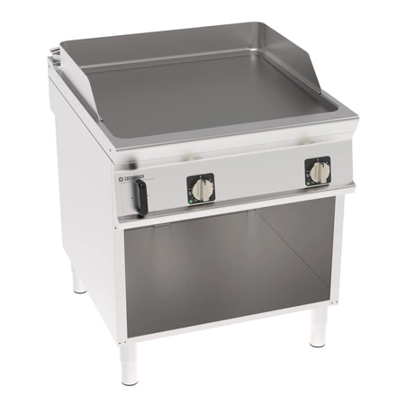 Szeroka, gładka płyta zapewnia równomierne smażenie, a otwarta podstawa oferuje praktyczne miejsce do przechowywania naczyń i akcesoriów. Solidna konstrukcja ze stali nierdzewnej gwarantuje trwałość, higienę oraz łatwe utrzymanie czystości nawet podczas intensywnej eksploatacji.