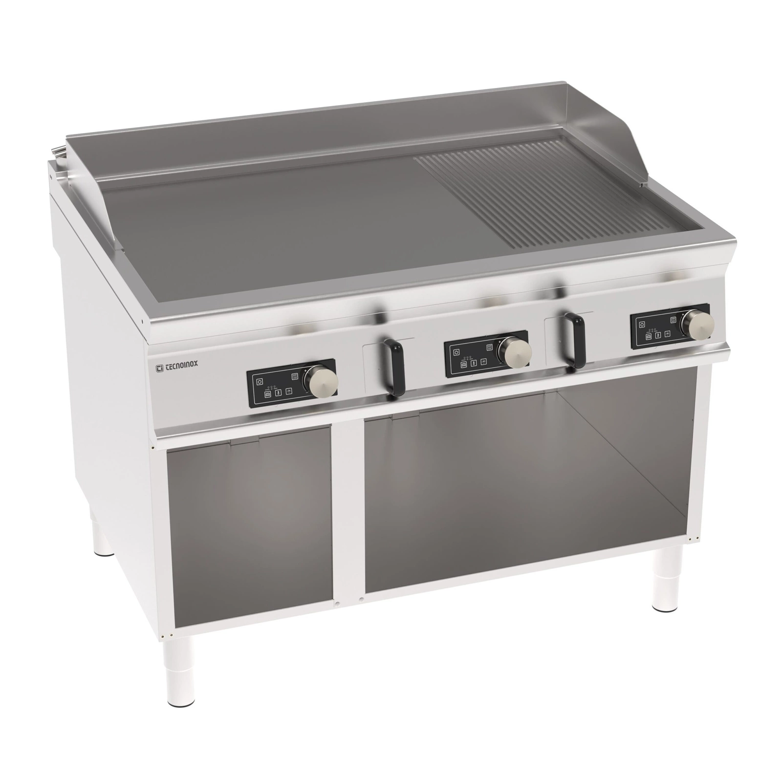 Płyta grillowa TECNOINOX 316289 to wszechstronne urządzenie dla dużych kuchni gastronomicznych, łączące wygodę elektronicznego sterowania z uniwersalną powierzchnią grillowania – 2/3 gładką i 1/3 ryflowaną. Trzy niezależne strefy grzewcze umożliwiają równoczesne przygotowanie różnych potraw, zapewniając precyzyjną kontrolę temperatury oraz powtarzalność efektów.