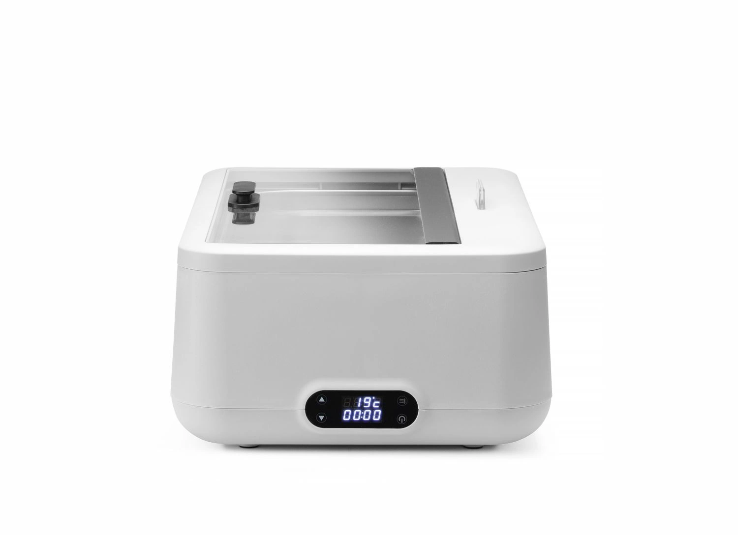 Na pokrywie umieszczony został praktyczny uchwyt (holder) na etykietę z nazwą dania. Podgrzewacz posiada elektroniczny panel sterowania, który wyświetla czas pracy, temperaturę zadaną i aktualną. Urządzenie posiada pamięć ostatniej ustawionej temperatury, która jest automatycznie przywracana przy ponownym włączeniu. Zakres regulacji temperatury, od 35˚C do 85˚C, z dokładnością co do 1˚, pozwala na precyzyjne dostosowanie warunków do rodzaju serwowanych potraw.