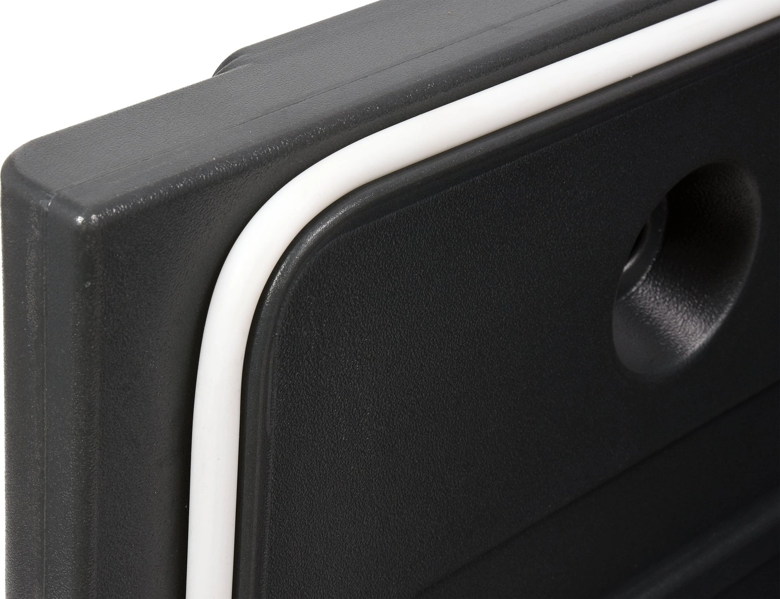 Pojemnik wykonano z odpornego na uderzenia i zarysowania polietylenu, który zabezpiecza produkt podczas intensywnego transportu. Pomiędzy ściankami znajduje się warstwa wysokiej klasy izolacji termicznej, która skutecznie utrzymuje temperaturę potraw: