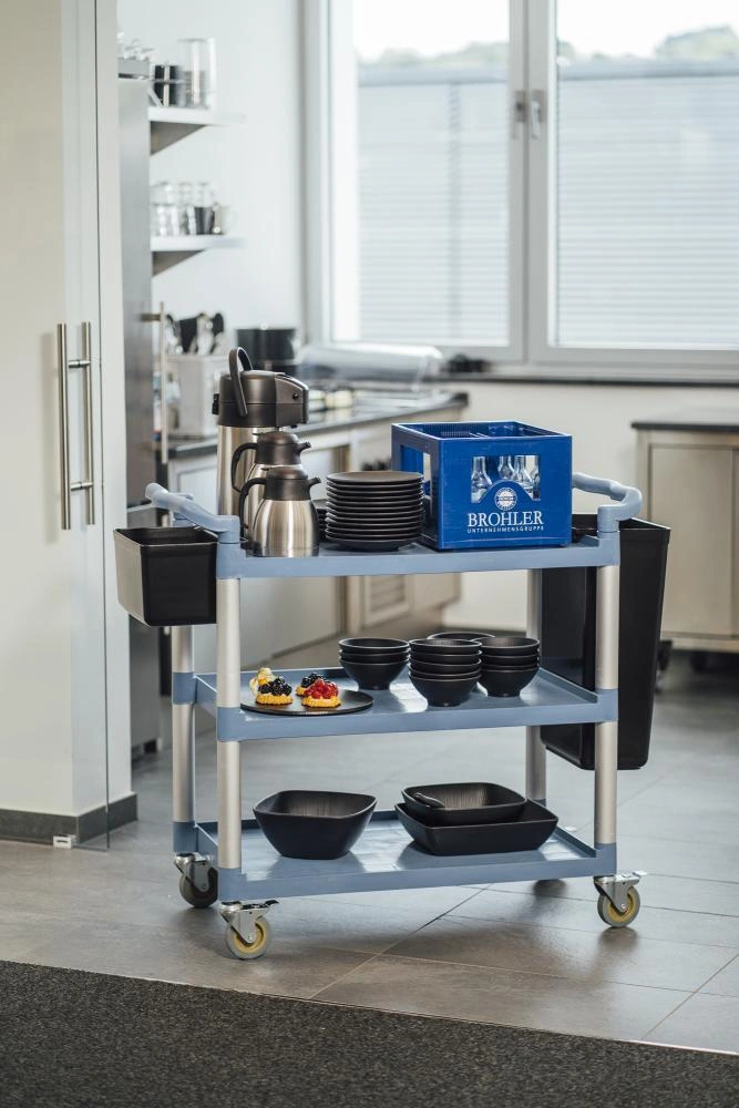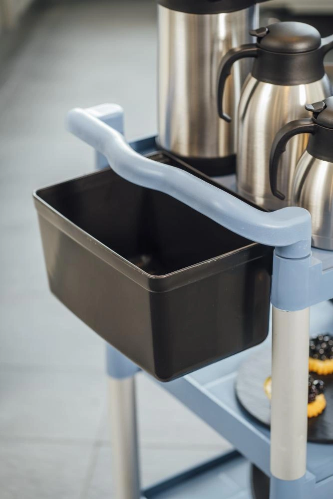 Pojemnik do wózka READY to praktyczne i wytrzymałe rozwiązanie przeznaczone do zawieszania na wózkach serwisowych lub transportowych. Wyróżnia się solidną konstrukcją z polipropylenu oraz dużą pojemnością, dzięki czemu sprawdza się zarówno w gastronomii, jak i w branży hotelarskiej czy usługowej. Jego kompaktowe wymiary pozwalają na wygodne użytkowanie nawet w ograniczonej przestrzeni.