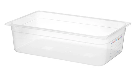Pojemnik GN 1/1 HACCP o głębokości 15 cm wykonany z przezroczystego polipropylenu. Wtopiona w tworzywo etykieta do monitorowania procesu magazynowania. Nie wchłania zapachów ani smaków.
