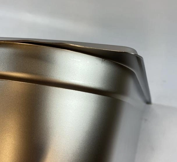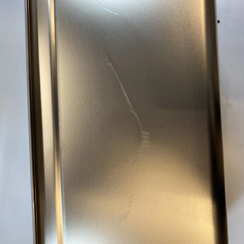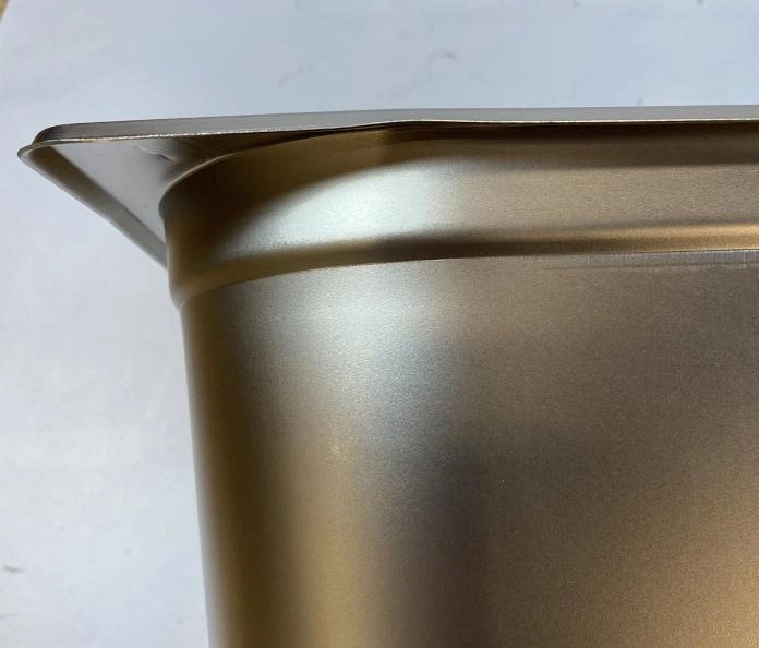Pojemnik pochodzi z ekspozycji- posiada rysy oraz na narożnikach widoczne wady- nierówności i zagięcia.