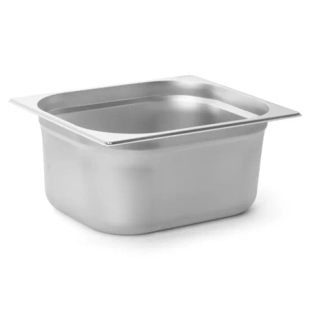 • Typ pojemnika: GN 1/2 – standardowy format stosowany w gastronomii, pasujący do większości urządzeń i akcesoriów.