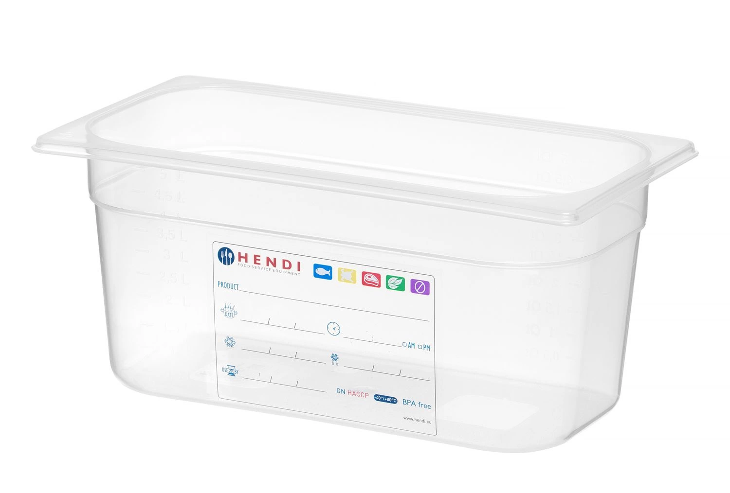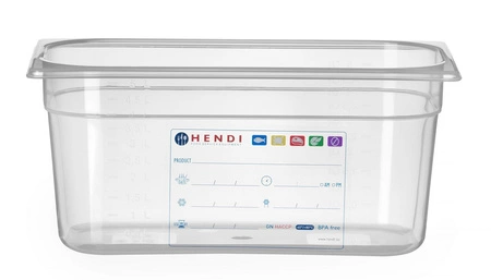 Pojemnik GN 1/3 HACCP o głębokości 15 cm wykonany z przezroczystego polipropylenu. Wtopiona w tworzywo etykieta do monitorowania procesu magazynowania. Nie wchłania zapachów ani smaków.