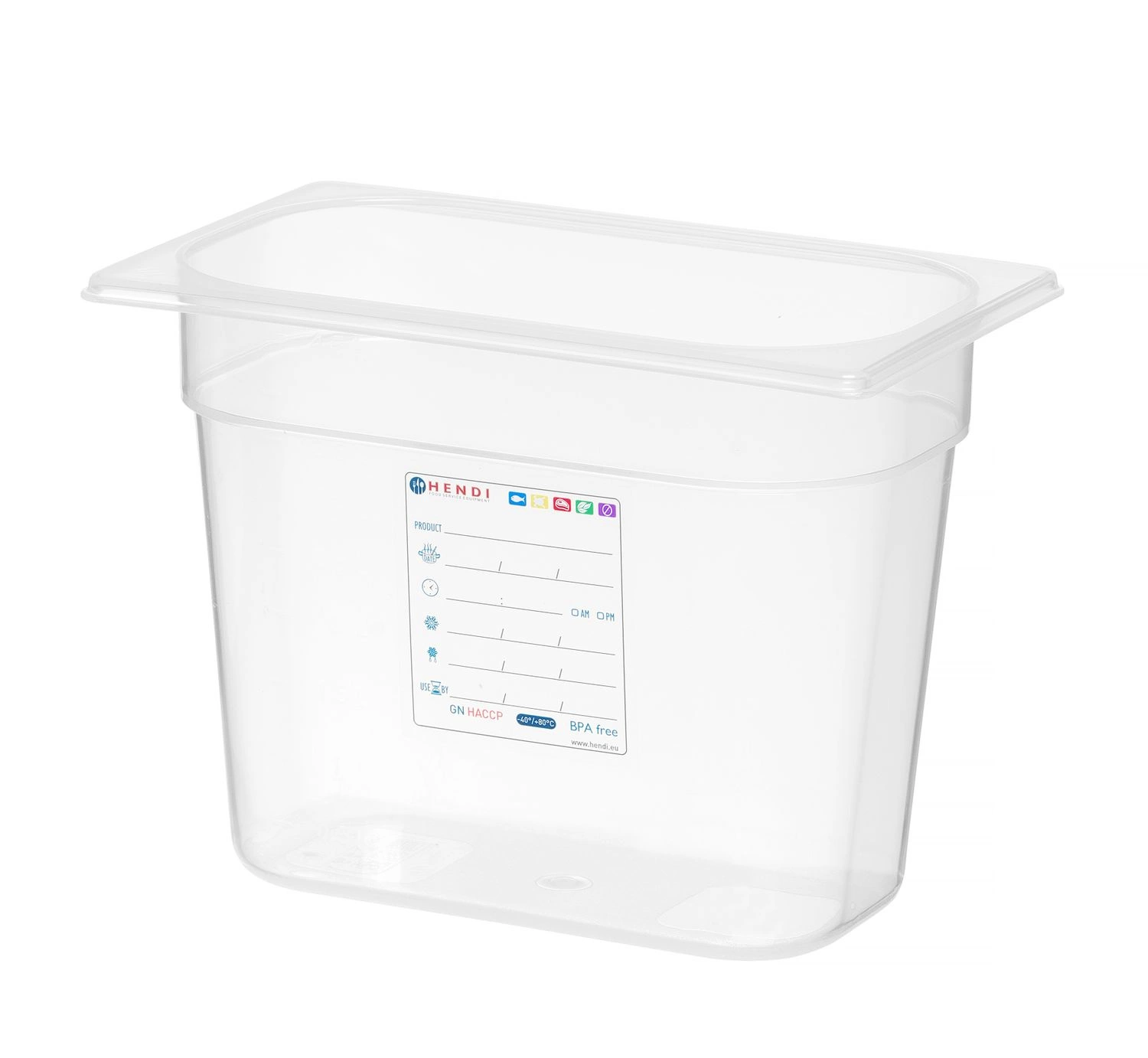 Pojemnik GN 1/4 HACCP o głębokości 20 cm wykonany z przezroczystego polipropylenu. Wtopiona w tworzywo etykieta do monitorowania procesu magazynowania. Nie wchłania zapachów ani smaków.